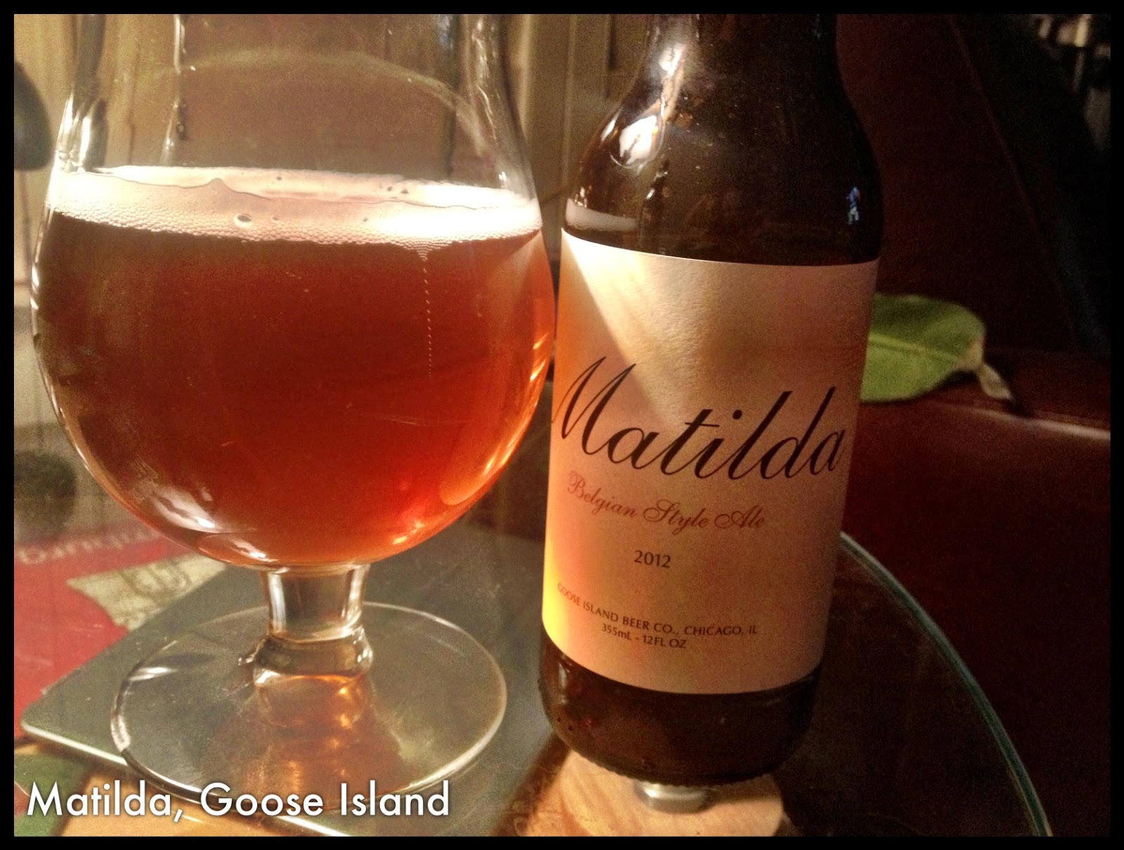 Here's the second beer I tried last night... (quick disclaimer: I know am posting this on a Friday morning, but I am NOT drinking the beer right now! I do have a day job!!)...so the second one tonight is good old 'Matilda'. I've had this beer several times before, and it could very well be one of my Belgian all time favorites! It is very balanced between a light sweetness and bitterness and delicate sourness when you first sip it (sour beers are my other obsession).